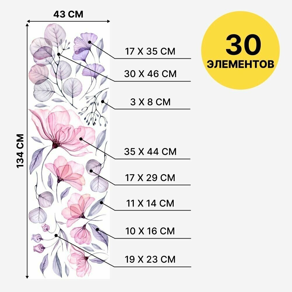 Наклейки интерьерные " Цветы " Stik, декор для дома , кухни , интерьера , на стену , декоративные украшения для комнаты. интересное: