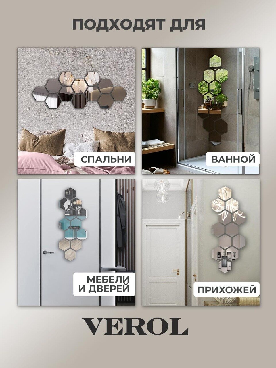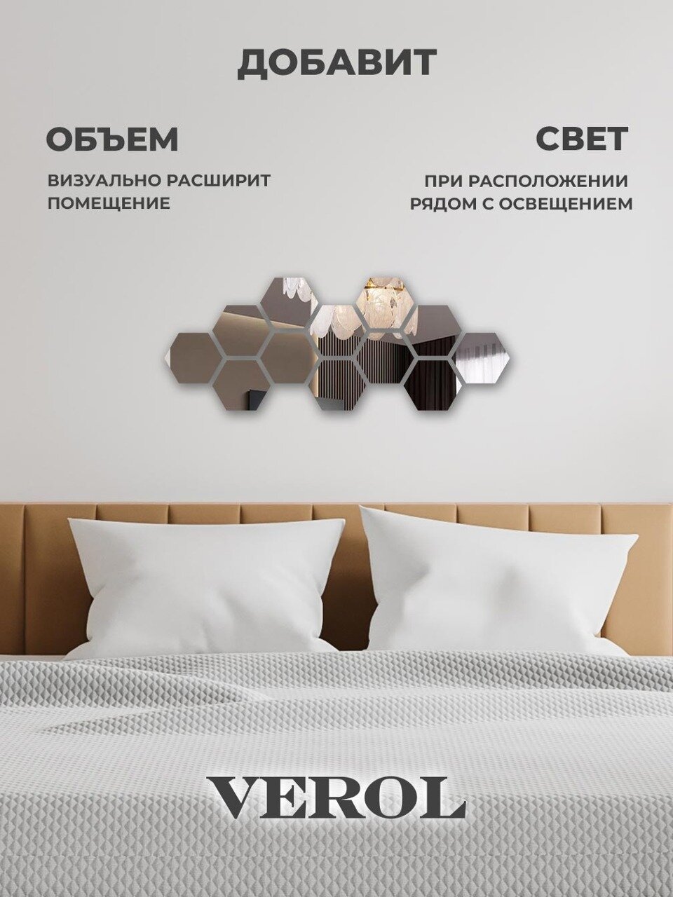 Зеркальные наклейки на стену VEROL «Соты», 12 шт, 11х12,6 см, декор для дома интересное: