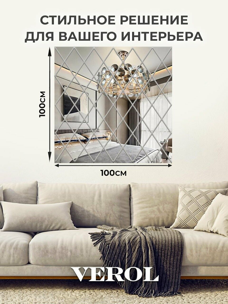 Зеркальные наклейки на стену VEROL «Ромбы», панно 100х100см, 58 элементов интересное:
