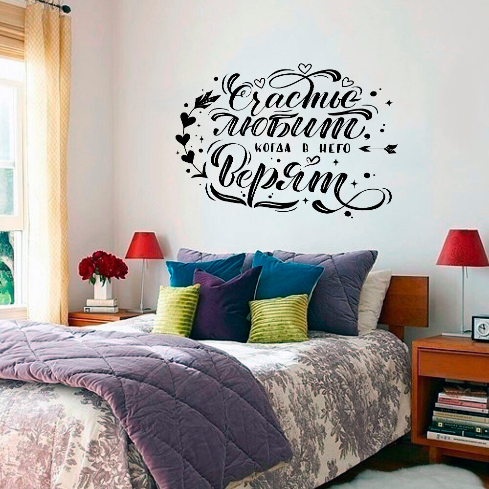 Наклейка интерьерная большого размера черная на стену "Счастье любит, когда в него верят", стикер на стекло, авто, металл, пластик, стену интересное: