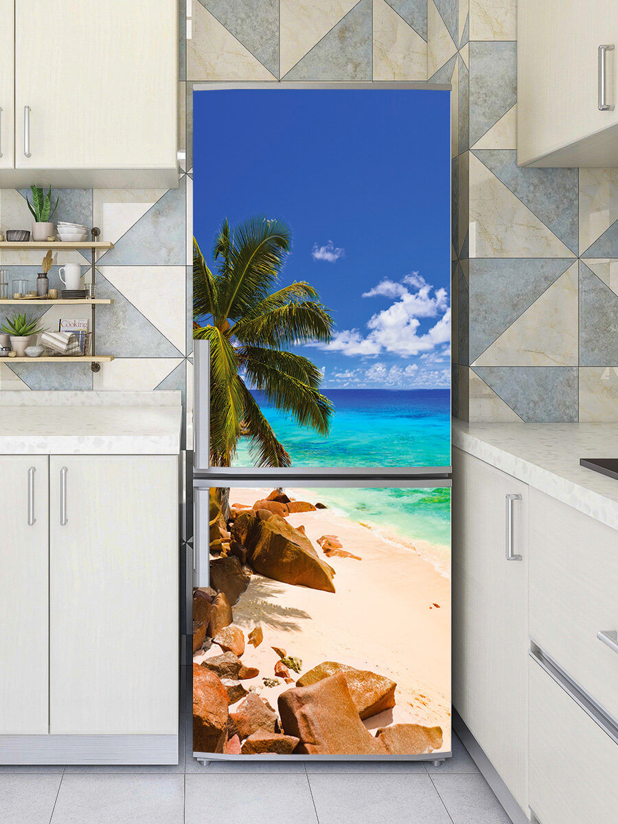 Наклейка интерьерная на дверь "Тропический пляж на Сейшельских островах", 80х200 см самоклеющаяся интересное: