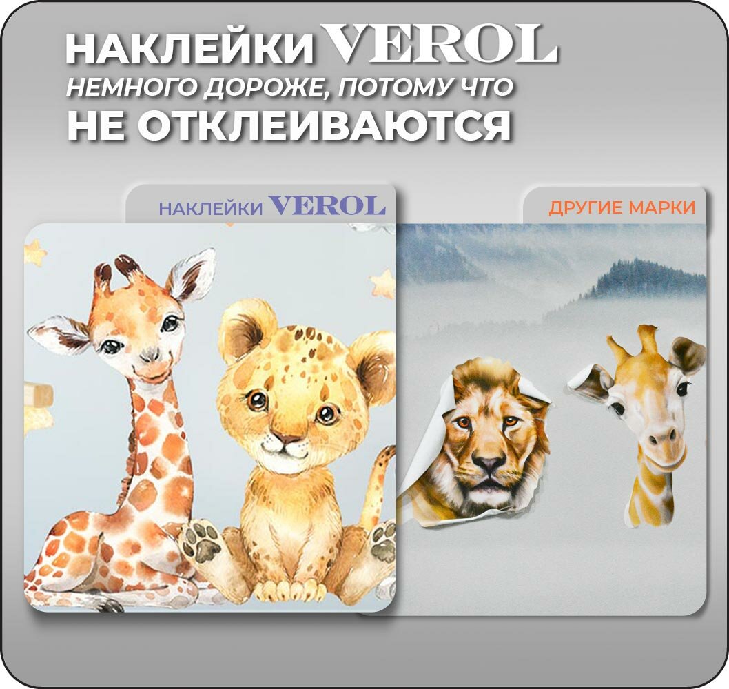 Наклейки интерьерные VEROL "Мультяшные звери" на стену, декор для дома, стикеры самоклеящиеся, украшения для комнаты, подарок