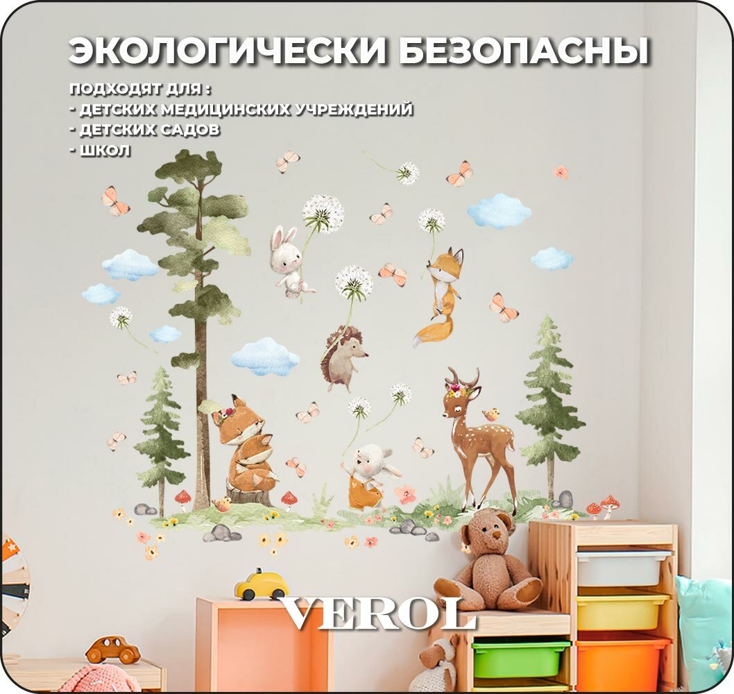 Купить Наклейки интерьерные VEROL "Животные в лесу" на стену, декор для дома, стикеры самоклеящиеся, украшения для комнаты, подарок
