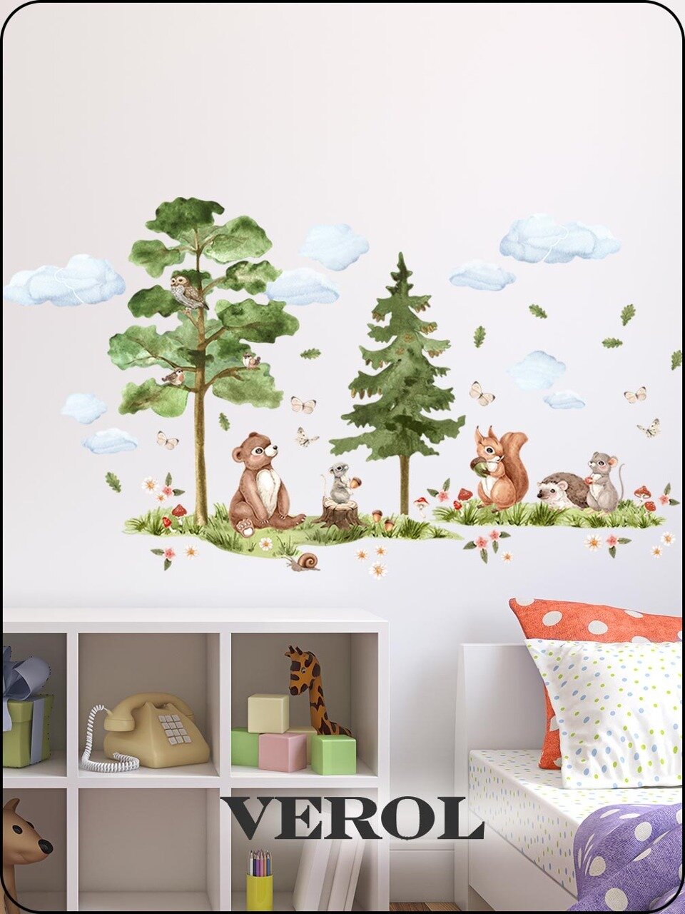 Купить Наклейки интерьерные VEROL "Лес с животными" на стену, декор для дома, стикеры самоклеящиеся, украшения для комнаты, подарок