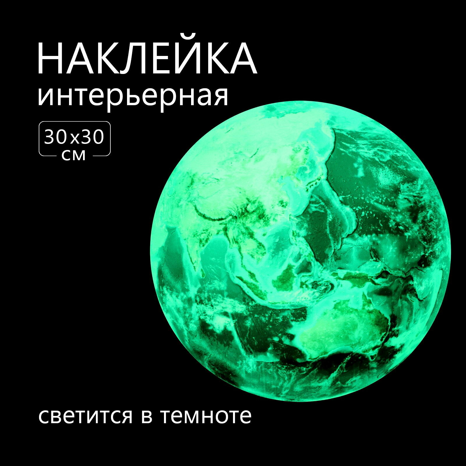 Наклейка 3Д интерьерная "Земля", светящаяся, 30х30см, тематика: 3d-эффект интересное: