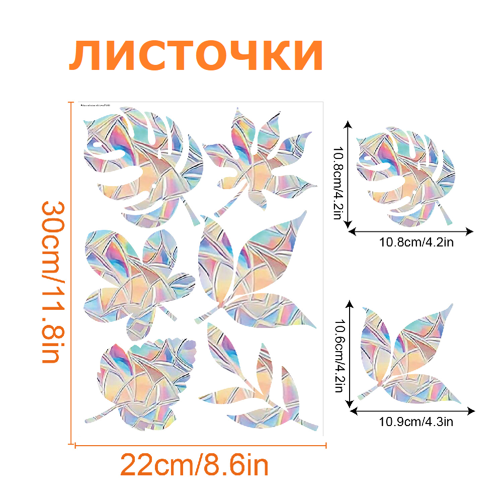 Купить Наклейка на окно радуга / Призма радужная Rainbow / Ловец солнца (Листочки)