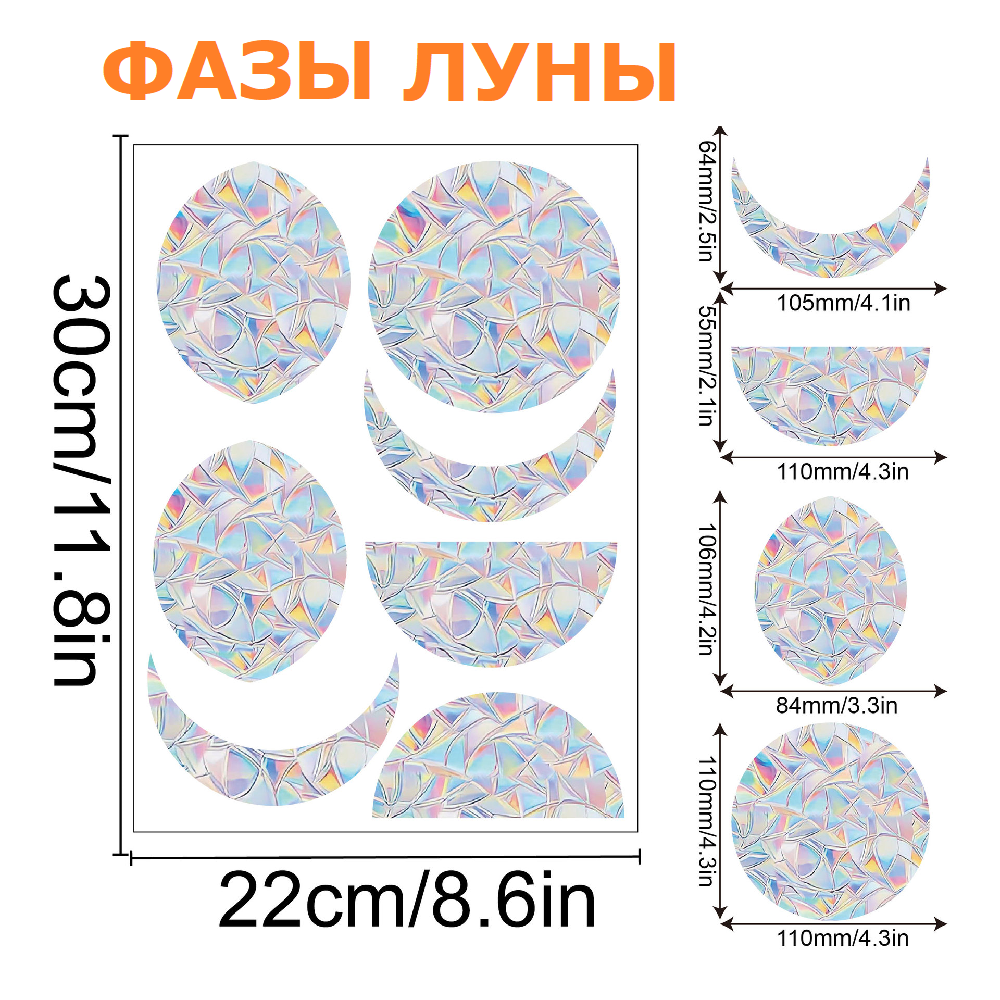 СохранитьНаклейка на окно радуга / Призма радужная Rainbow / Ловец солнца (Фазы луны) интересное: