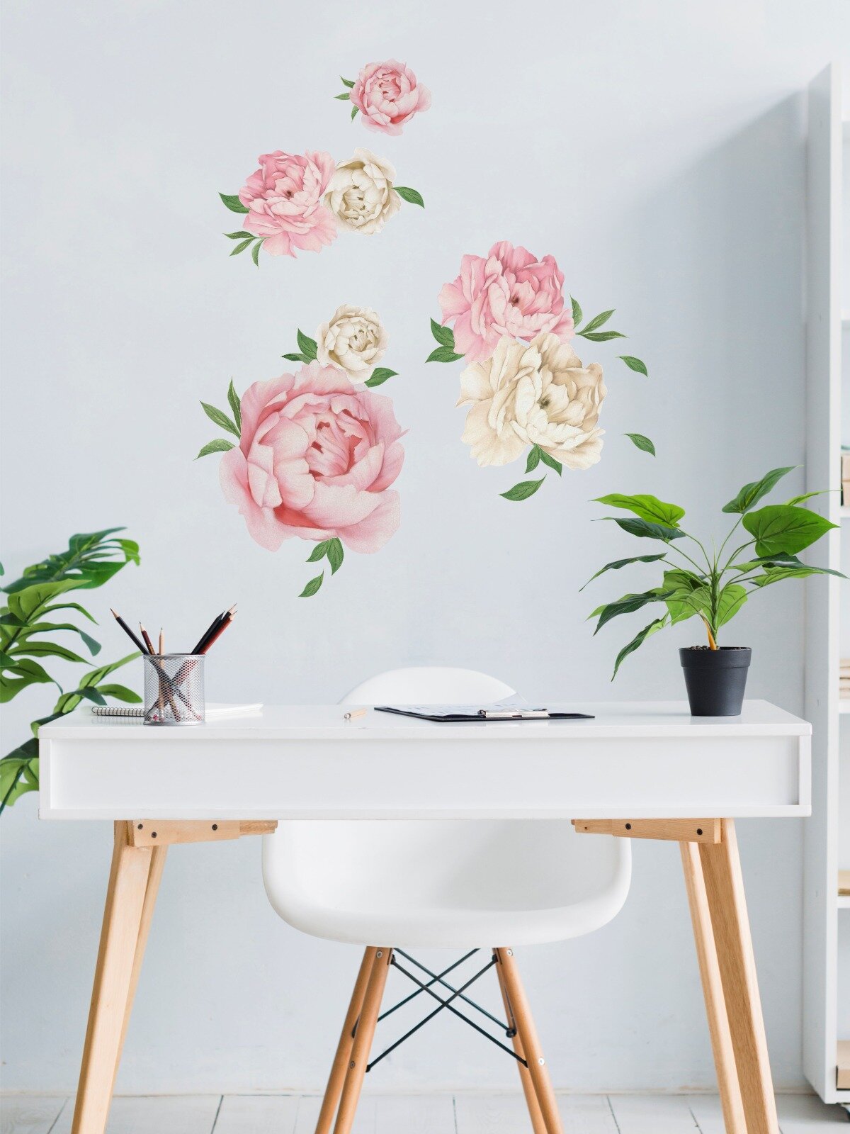 Купить Наклейки на стену интерьерные Пионы, цветочный принт для декора комнаты Lisadecor