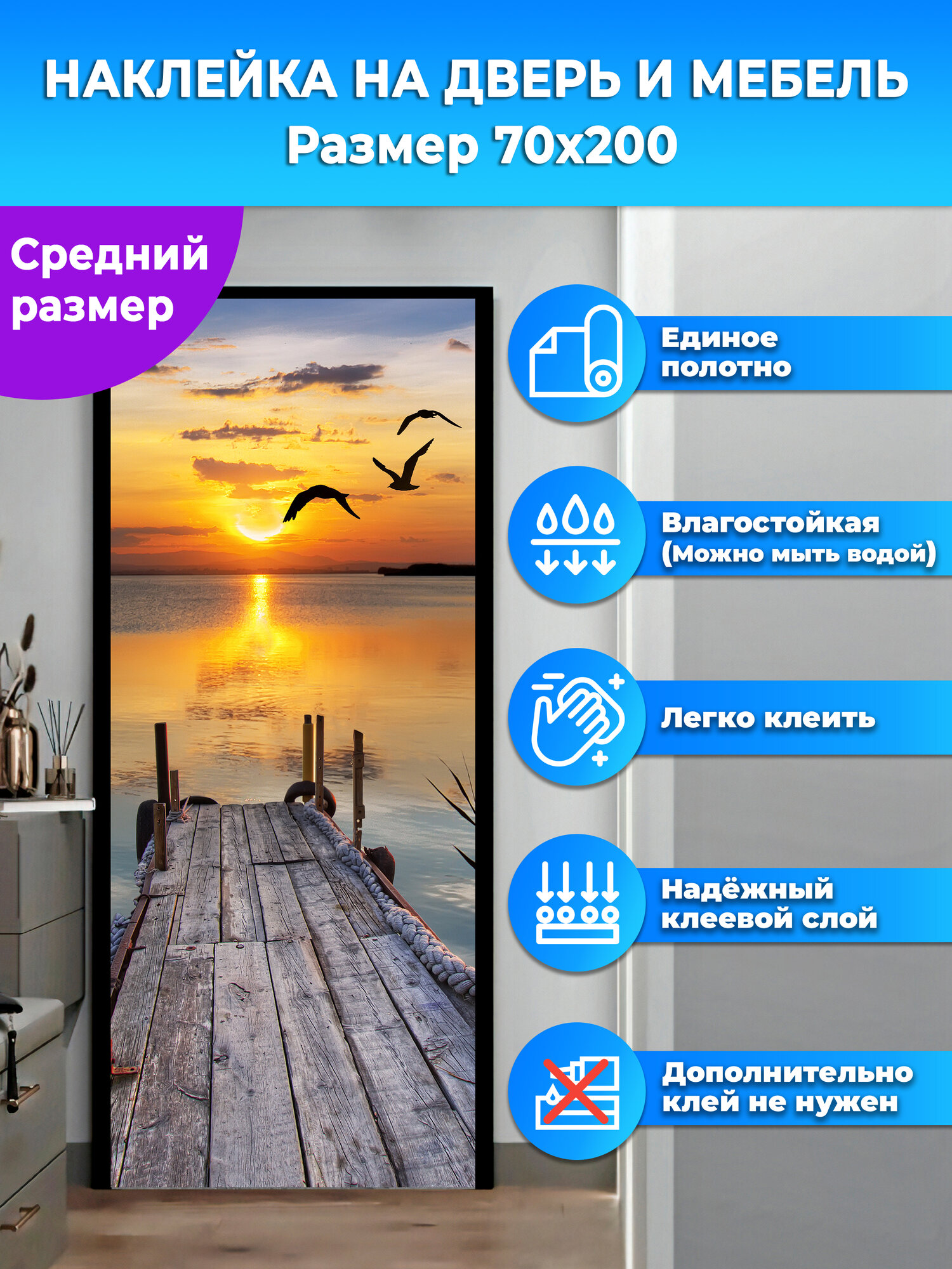 Наклейка интерьерная на дверь "Закат над рекой", самоклеющаяся 70х200 см. интересное: