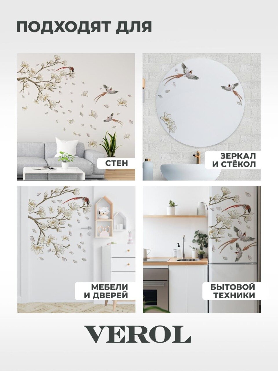 Наклейки интерьерные VEROL "Дерево сакуры" наклейка интерьерная на стену, декор для дома, пленка самоклеящаяся интересное: