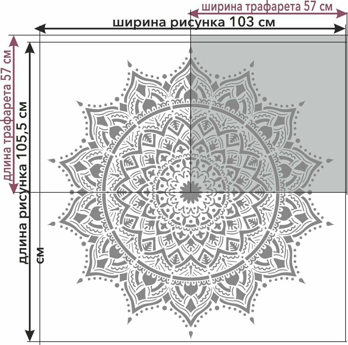 Купить Трафарет "Мандала №5" 57х57 см - для творчества и декора стен, мебели, плитки и штукатурки. Многоразовый, пластик 0,5 мм