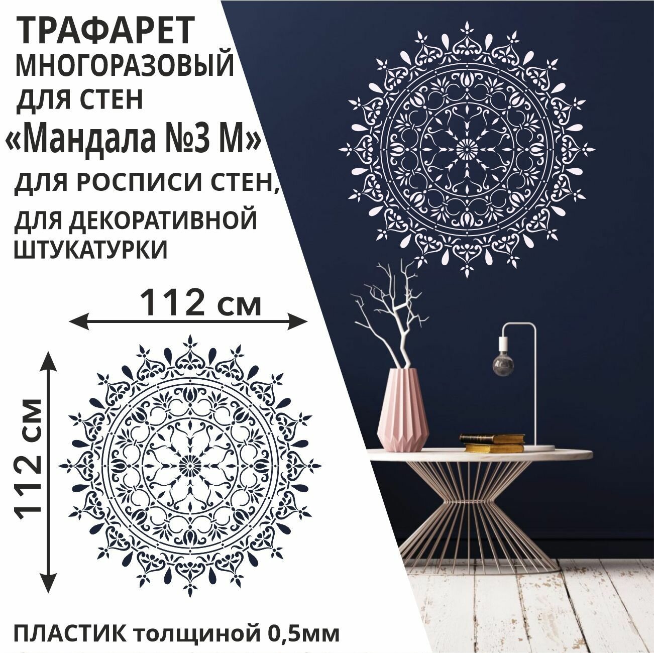Купить Трафарет "Мандала №3 M" 60х60 см - для творчества и декора стен, мебели, плитки и штукатурки. Многоразовый, пластик 0,5 мм