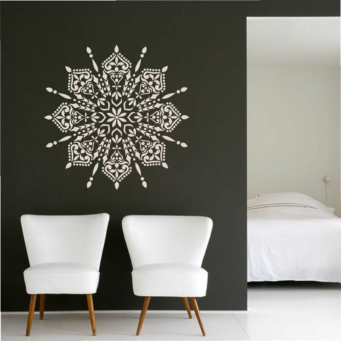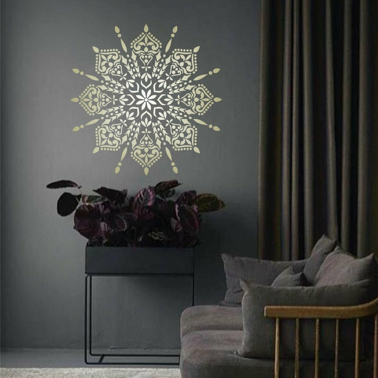 Трафарет "Мандала №6" 60х60 см - для творчества и декора стен, мебели, плитки и штукатурки. Многоразовый, пластик 0,5 мм