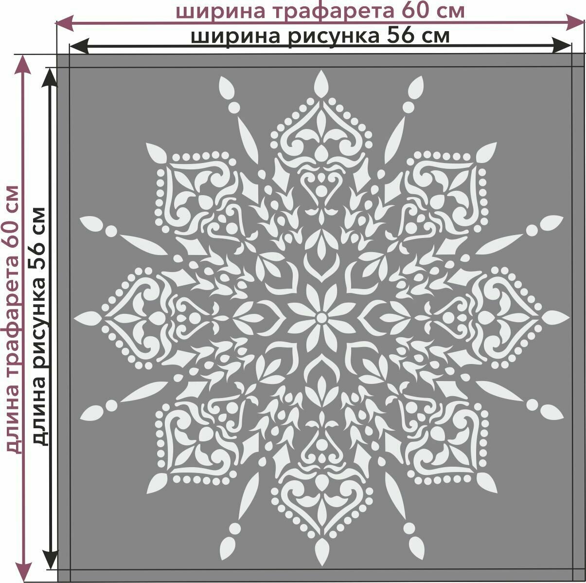 Трафарет "Мандала №5" 57х57 см - для творчества и декора стен, мебели, плитки и штукатурки. Многоразовый, пластик 0,5 мм