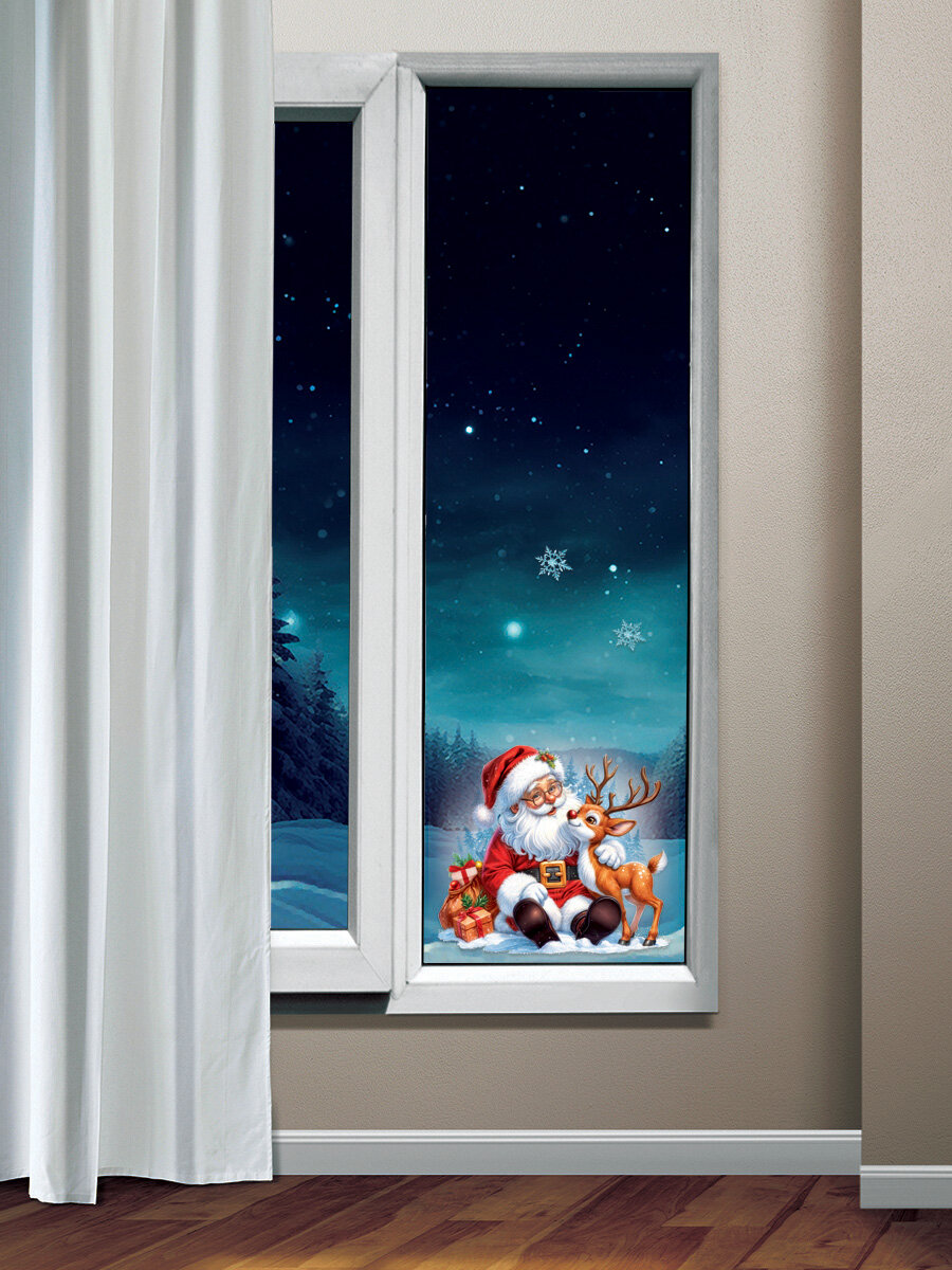 Купить Новогодние наклейки с двухсторонней цветной печатью на окна "Дед Мороз с оленем"