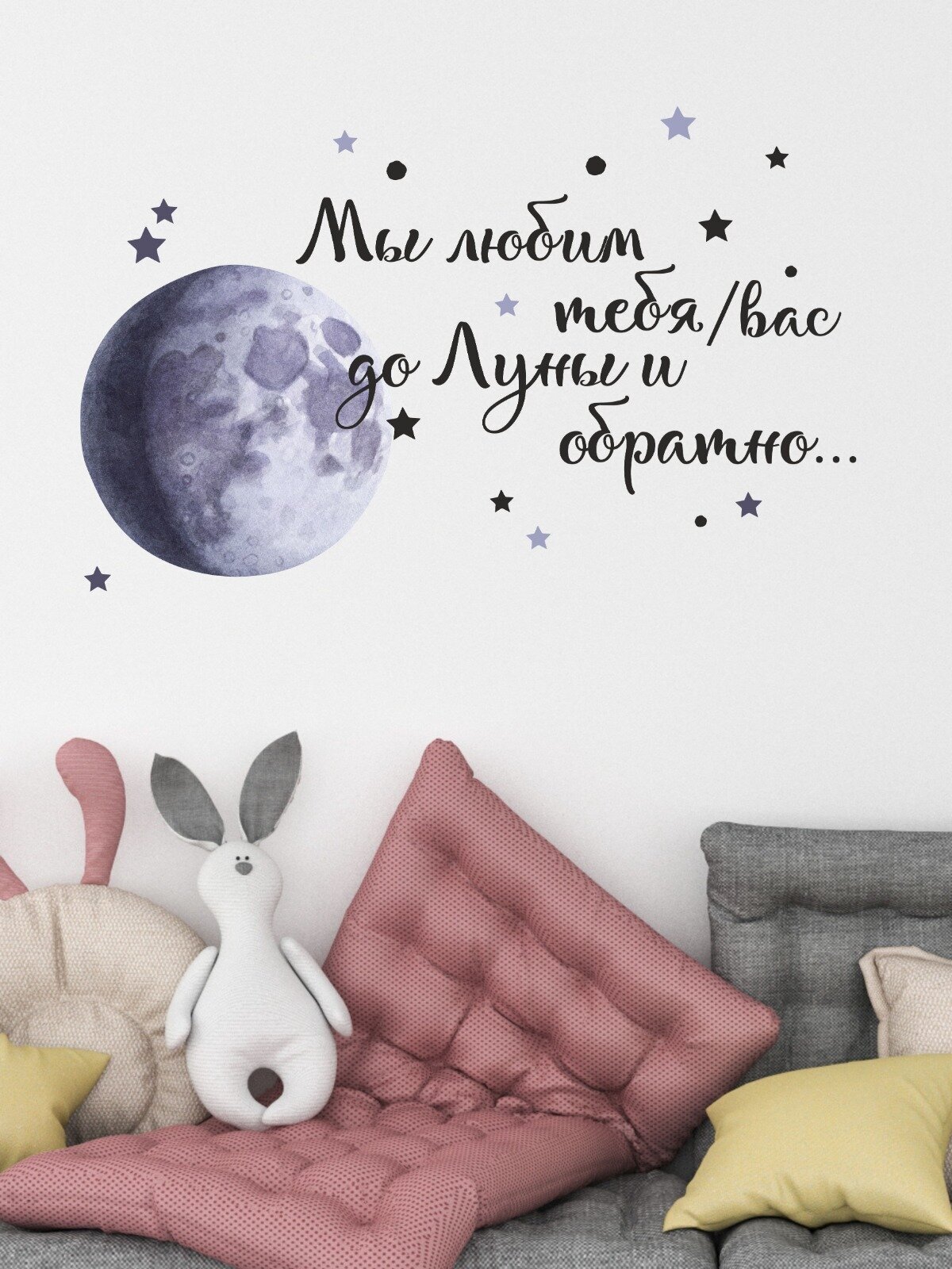 Купить Интерьерная наклейка надпись на стену Мы любим до Луны и обратно, декор для детской комнаты Lisadecor