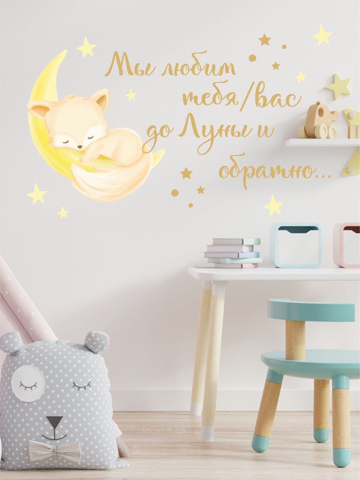 Купить Интерьерная наклейка надпись на стену Мы любим до Луны и обратно с лисичкой, декор для детской комнаты Lisadecor