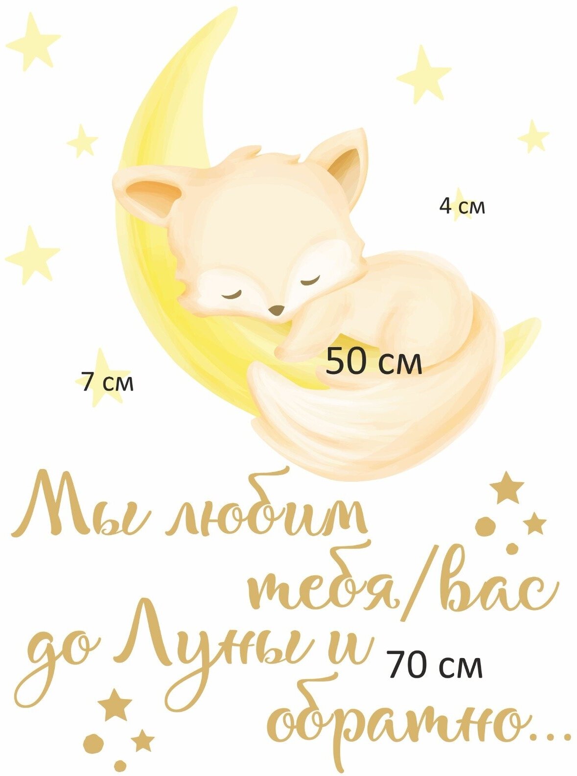 Интерьерная наклейка надпись на стену Мы любим до Луны и обратно с месяцем и звездами, декор для детской комнаты Lisadecor