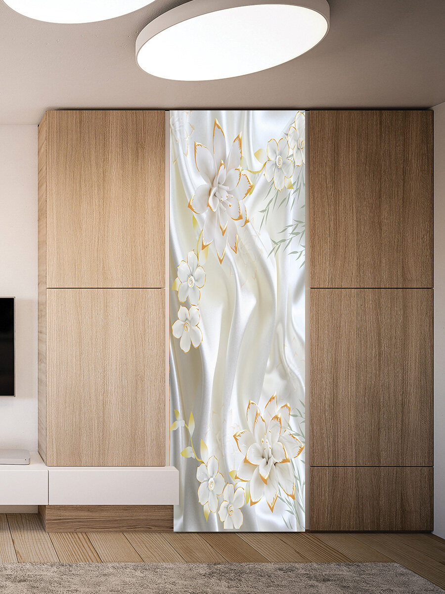 Наклейка интерьерная на дверь "Белые цветы на белом фоне", 60х200 см самоклеющаяся