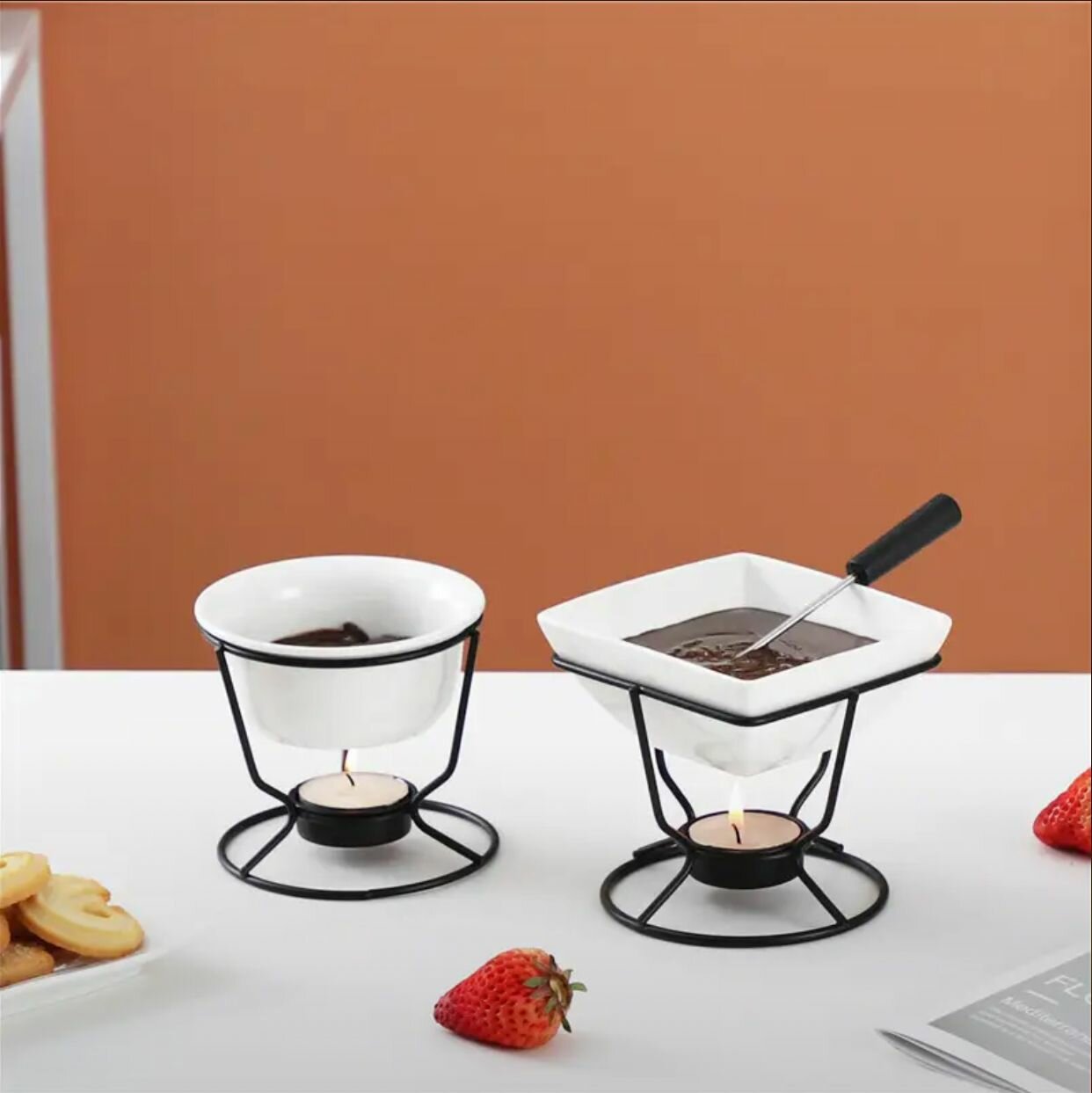 Купить Набор фондю романтический для 2 человек, керамический горшочек с металлической подставкой, 200 мл