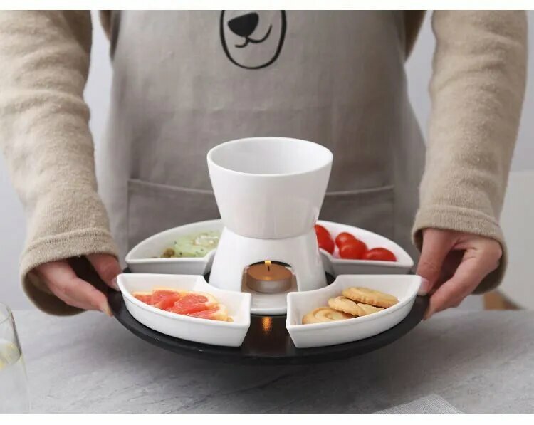 Набор для фондю, Белый керамический фондю-набор для шоколада и сыра с подогревом и чаем из имбиря интересное: