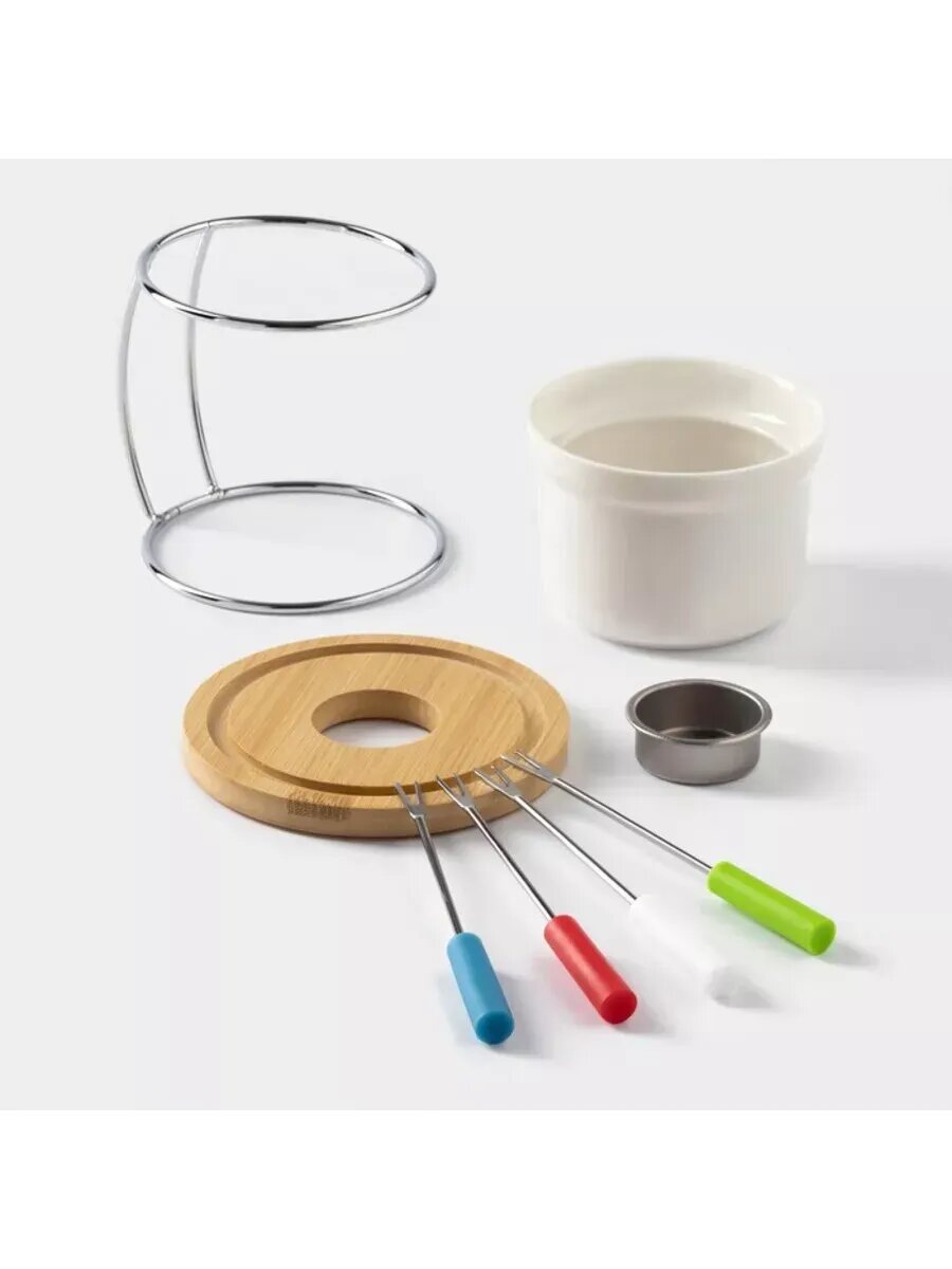 Керамический набор для фондю, чаша и шпажки, белый интересное: