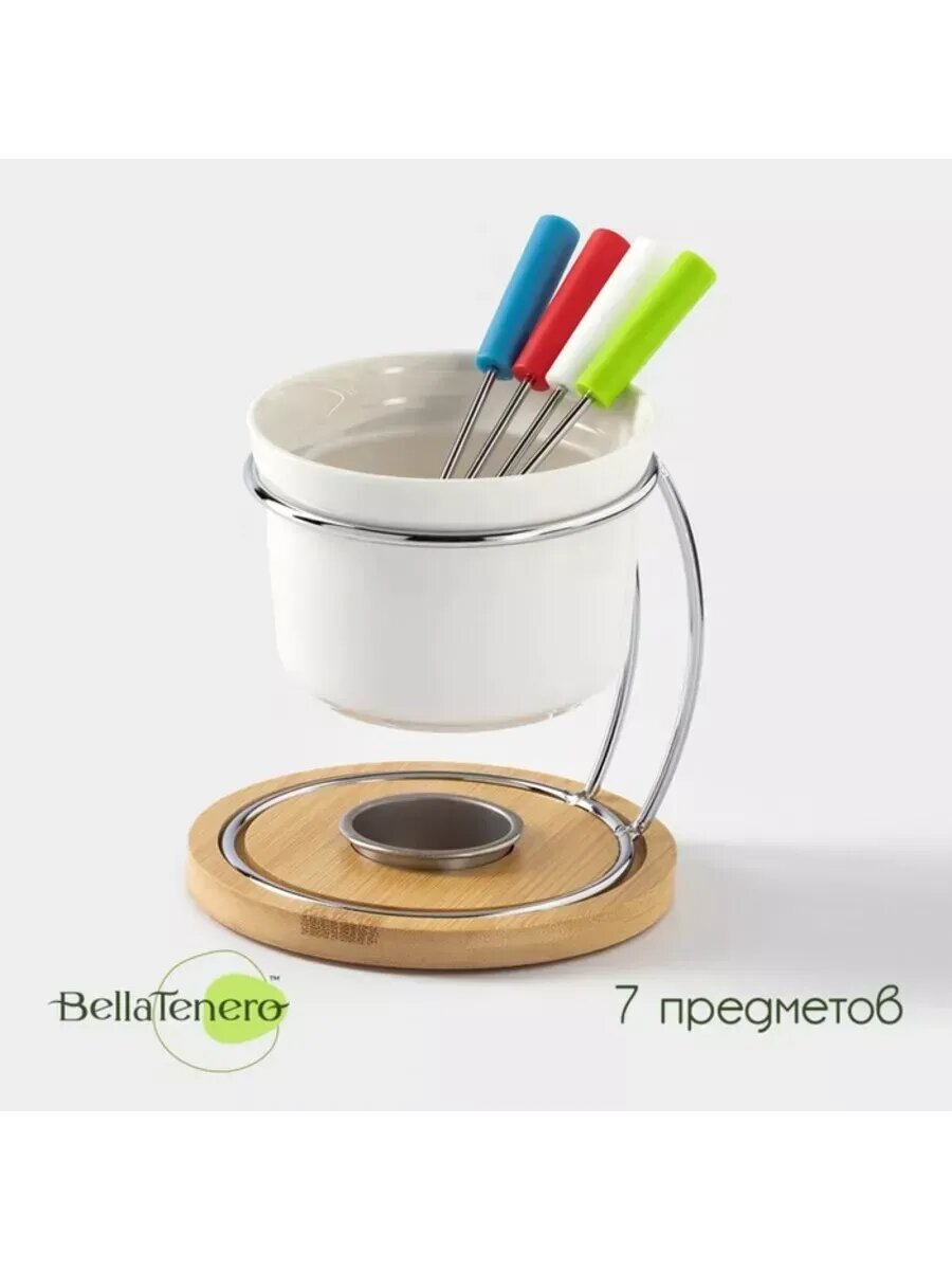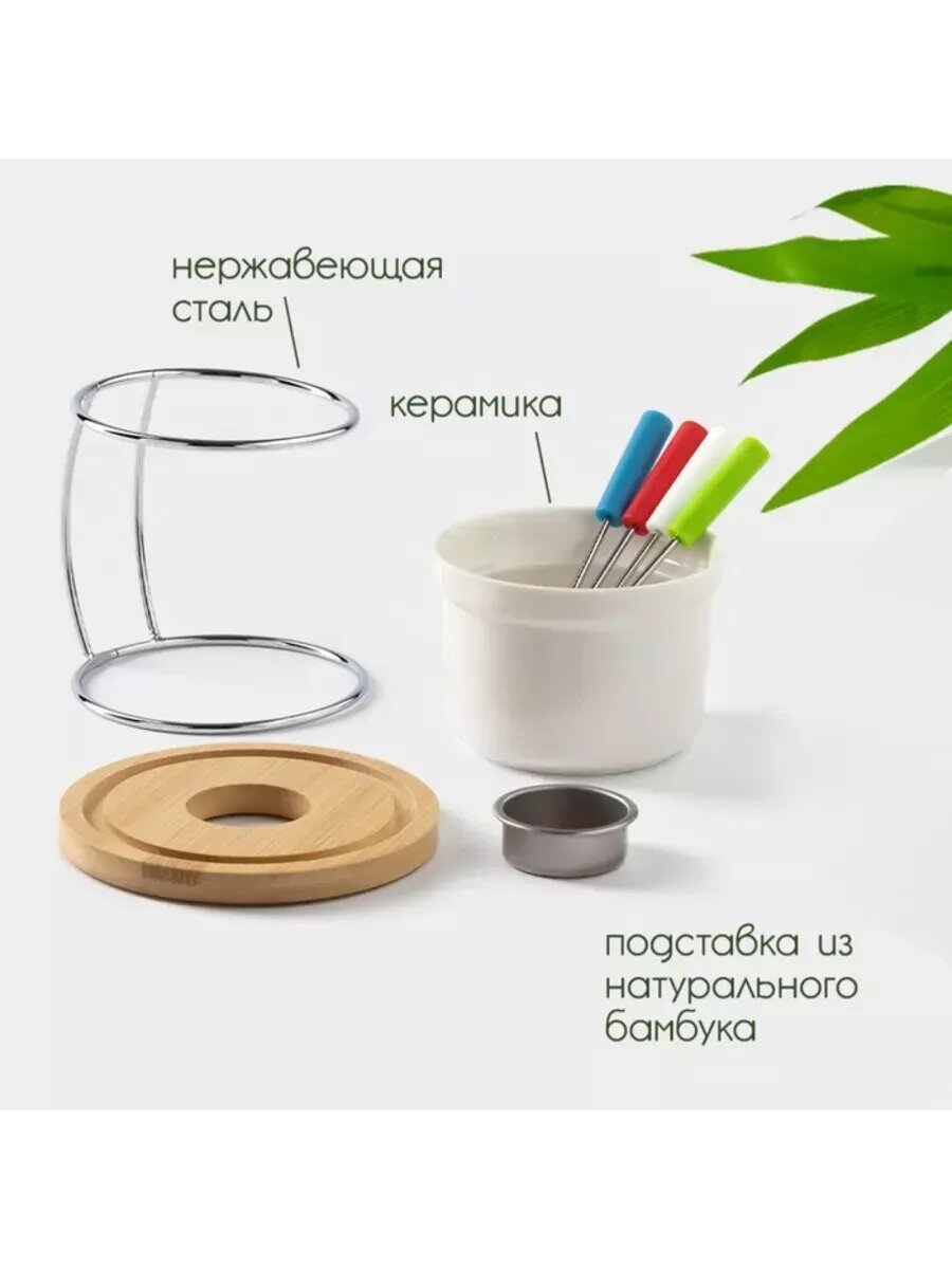 Набор для фондю "Глянец", 6 предметов: чаша 400 мл, подставка, 4 шпажки, керамика, белый