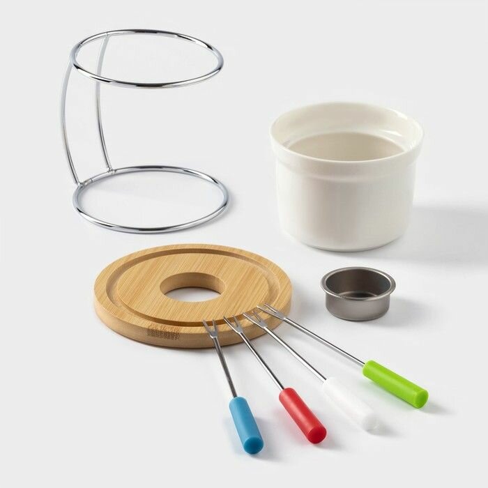 Купить Набор для фондю BellaTenero керамический, 5 предметов: чаша 250 мл, подставка, 4 шпажки, цвет белый