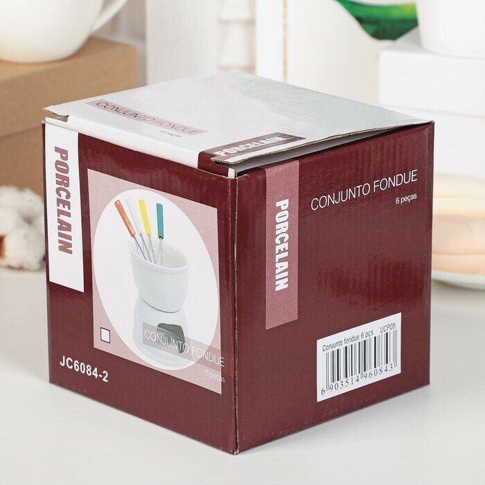 Набор для фондю "Глянец", 6 предметов: чаша 400 мл, подставка, 4 шпажки, керамика, белый