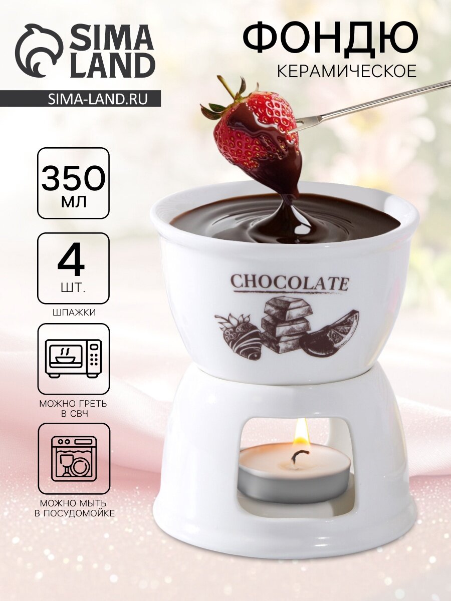 Набор для фондю "Глянец", 6 предметов: чаша 400 мл, подставка, 4 шпажки, керамика, белый