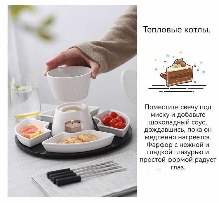 Набор для шоколадного фондю, Подходит для шоколада и сыра, белое интересное: