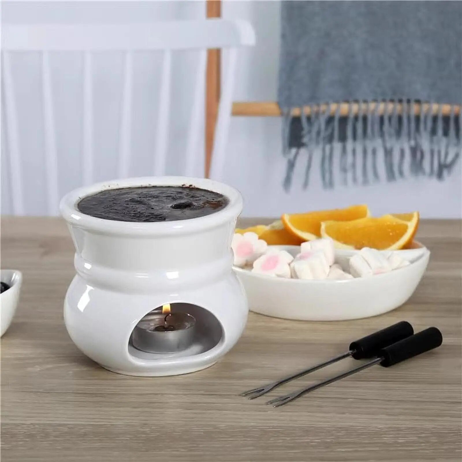 Набор для фондю "Глянец", 6 предметов: чаша 400 мл, подставка, 4 шпажки, керамика, белый