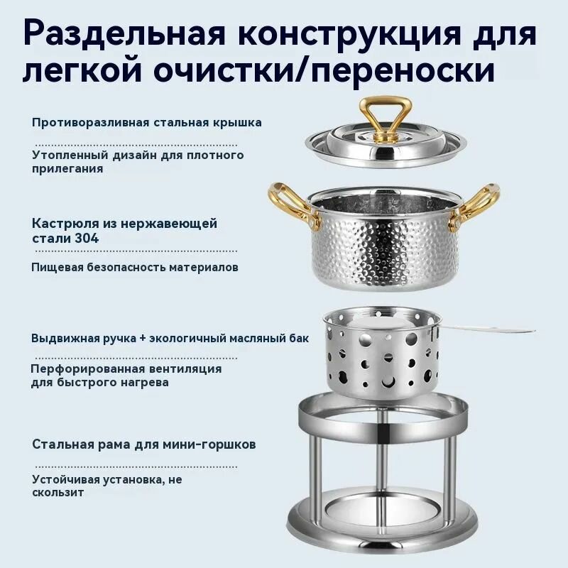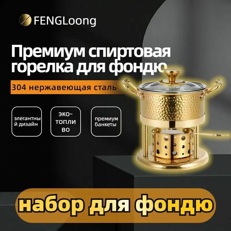 Купить FENGloong Премиум спиртовая горелка для фондю: 304 нержавеющая сталь, эко-топливо, для ресторанов и мероприятий