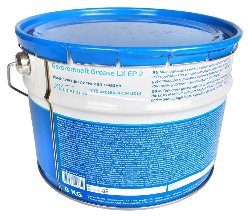 GAZPROMNEFT 2389906920 смазка GAZPROMNEFT GREASE LX EP 2, 8 КГ (синяя многоцелевая до +160град.С)