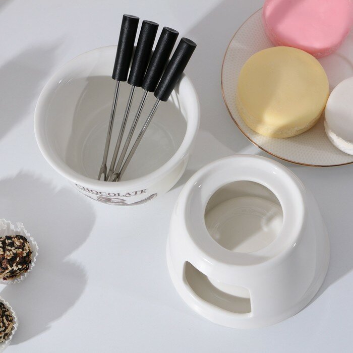 Набор для фондю "Глянец", 6 предметов: чаша 400 мл, подставка, 4 шпажки, керамика, белый