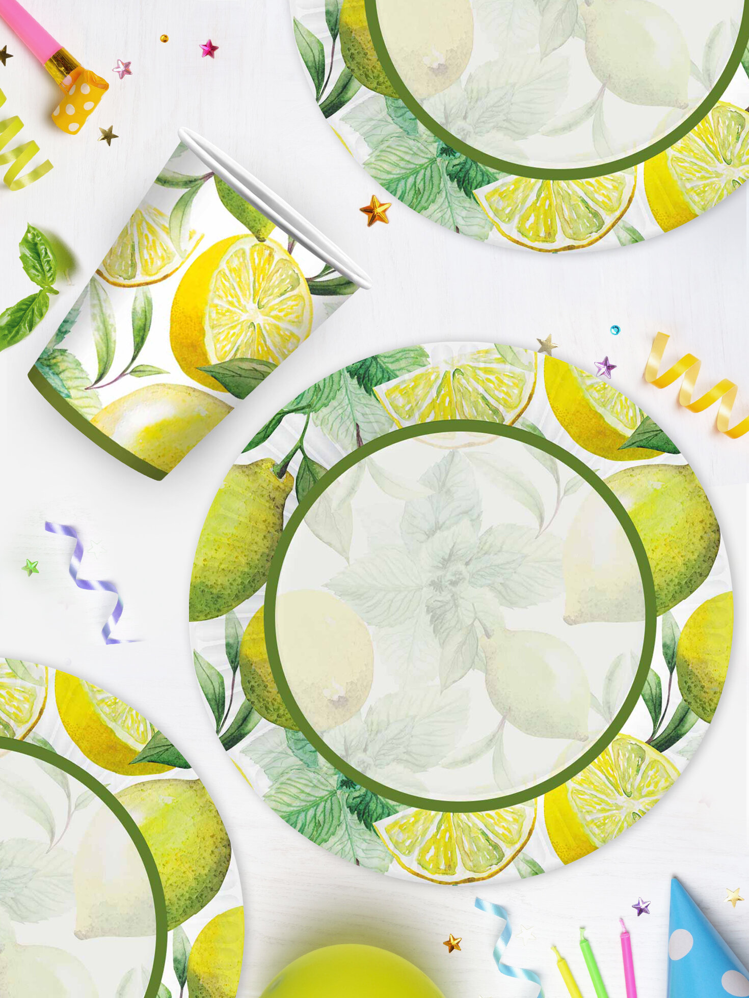 Купить Набор для праздника Лимоны (тарелка бол, стакан, по 12 шт.)