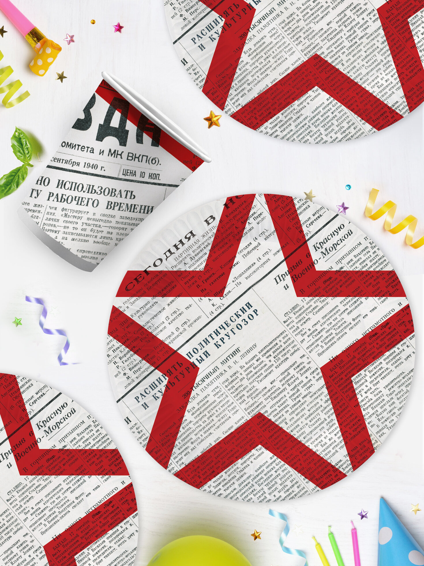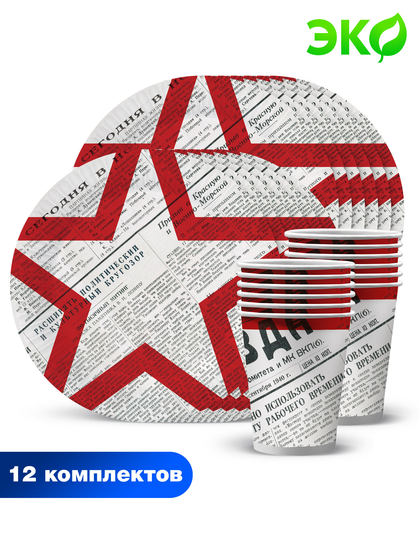 Купить Набор для праздника Газета-2 (тарелка бол, стакан, по 12 шт.)