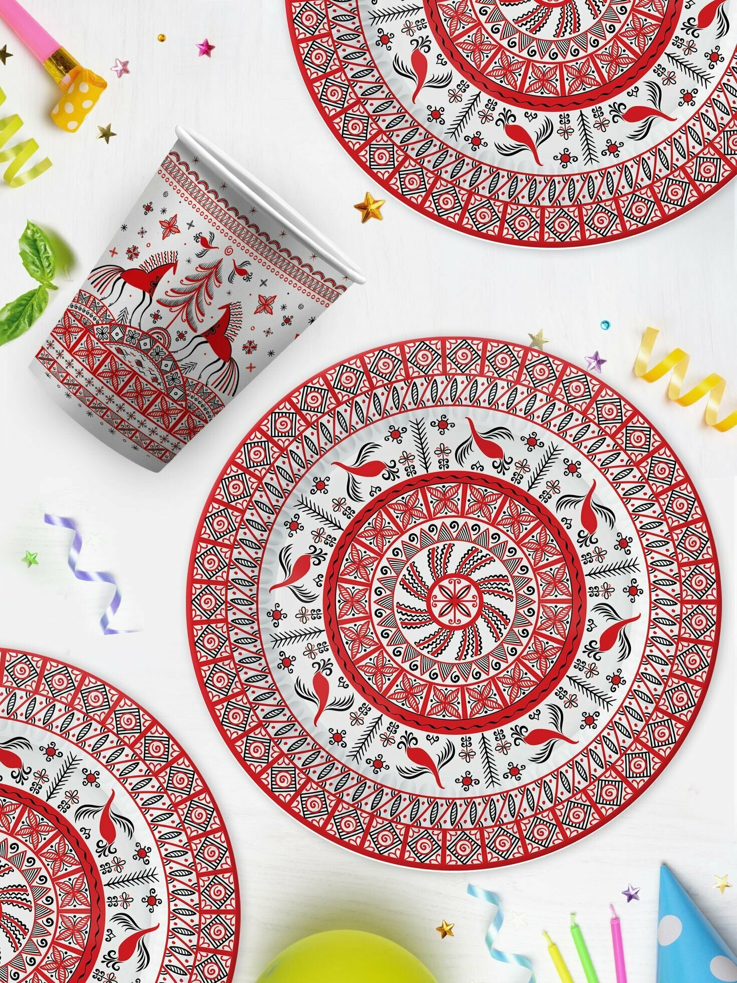 Купить Набор одноразовой бумажной посуды для праздника ND Play. Мезенская роспись (стакан, тарелка 23 см, по 12 шт.)