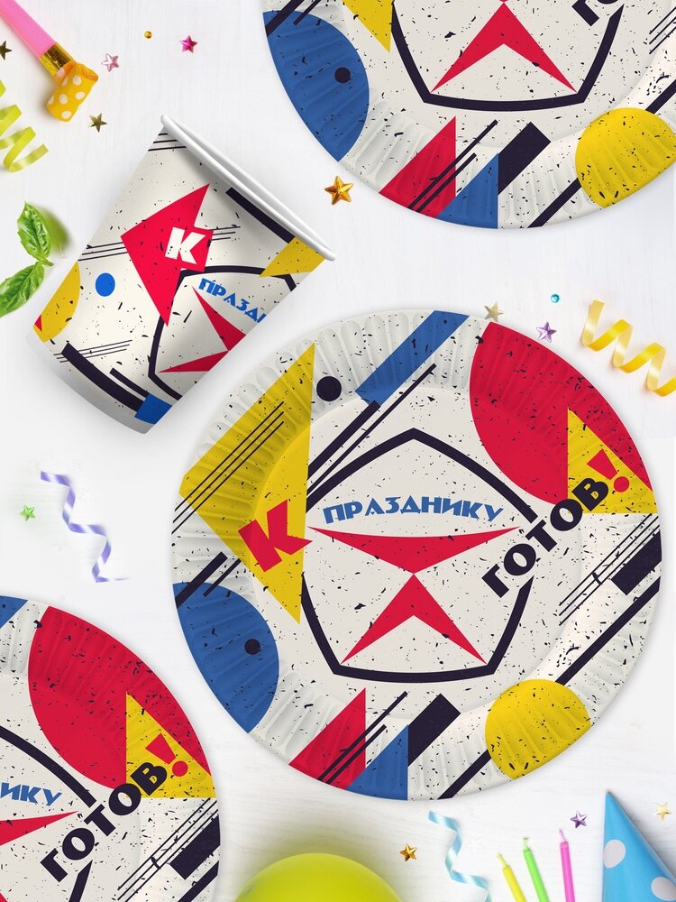 Купить Набор одноразовой бумажной посуды для праздника ND Play / К празднику готов! (тарелка бол, стакан, по 12 шт.)