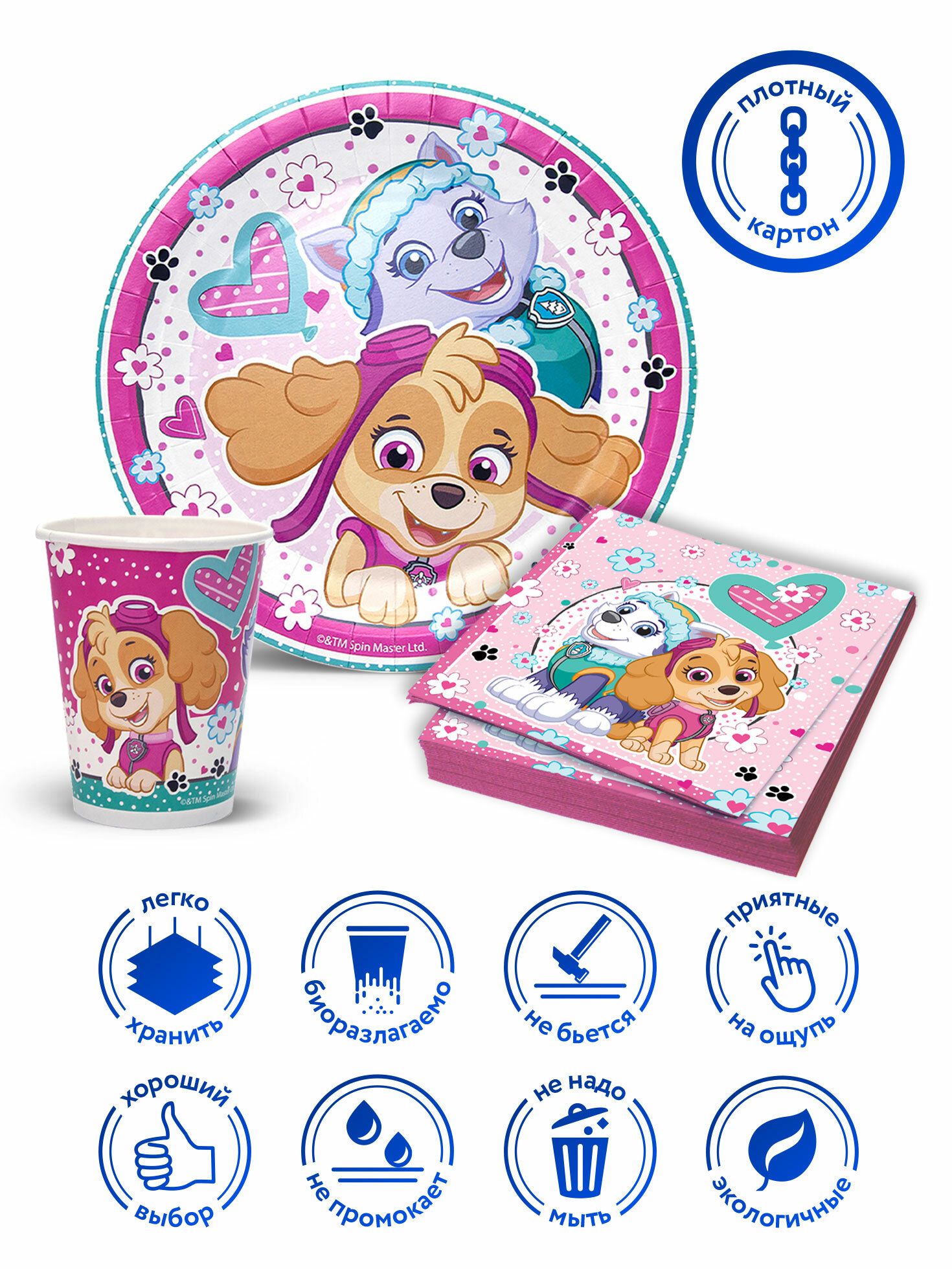 Купить Набор бумажной одноразовой посуды для праздника Щенячий патруль № 6 (для девочек) ( стаканы, тарелки, салфетки) ND Play