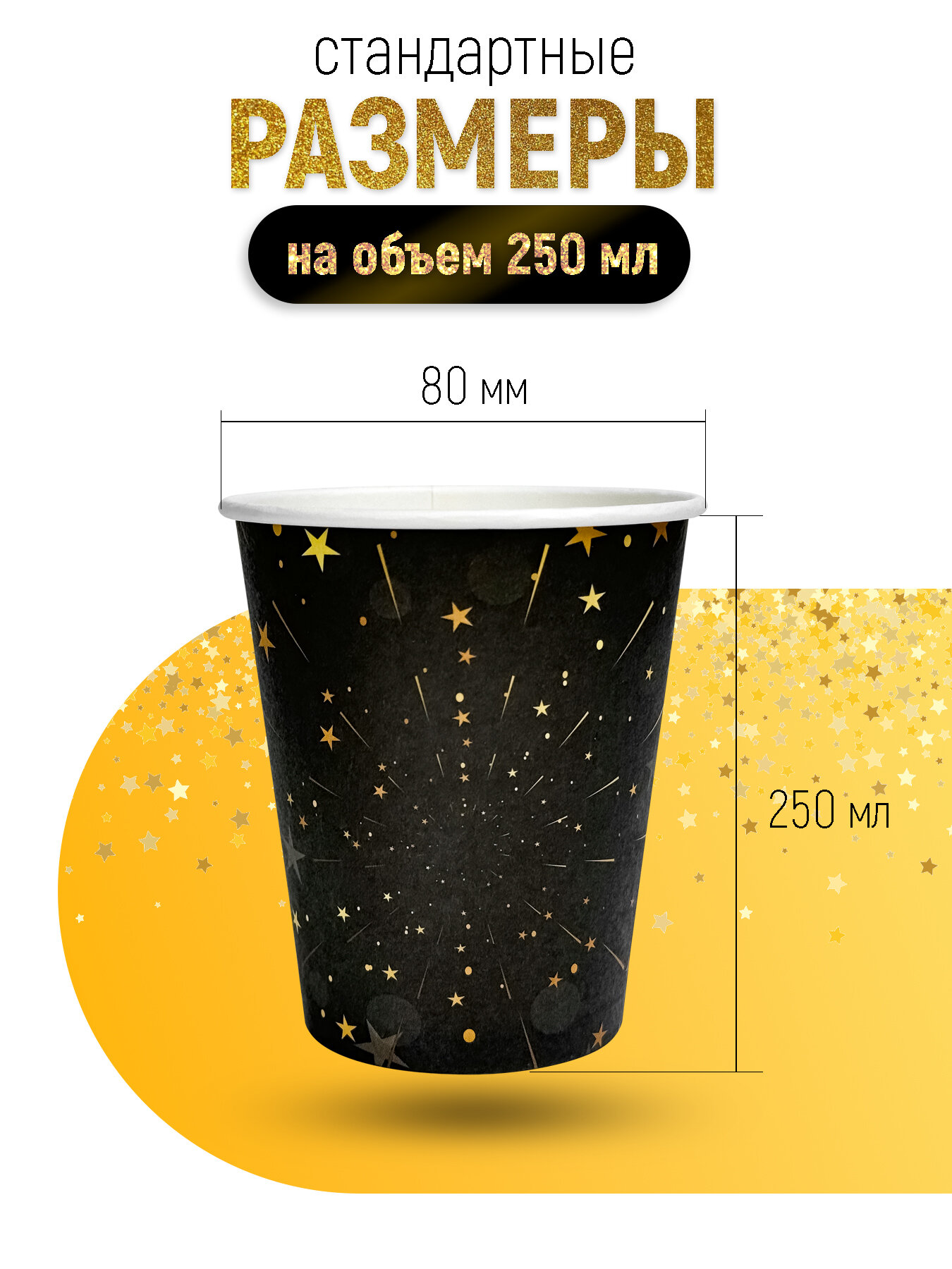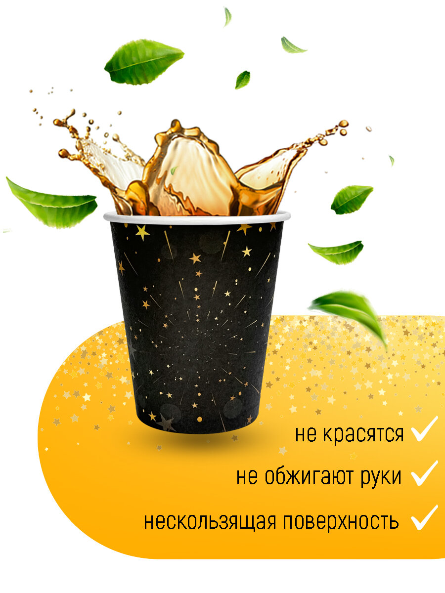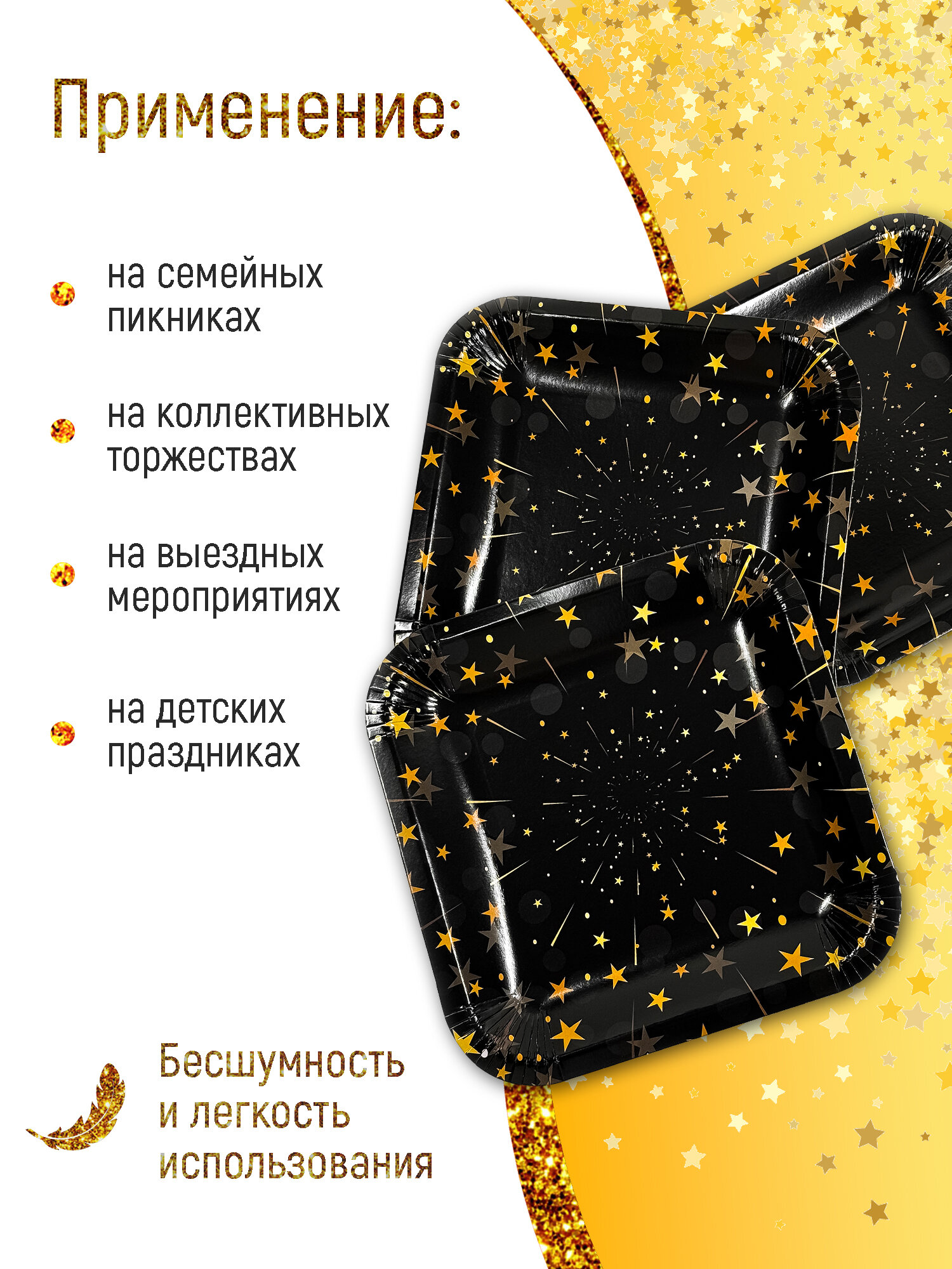 СохранитьПосуда КАРТОНЭКО "Золотые звёзды", одноразовая, 20 комплектов, чёрная/золотистая интересное: