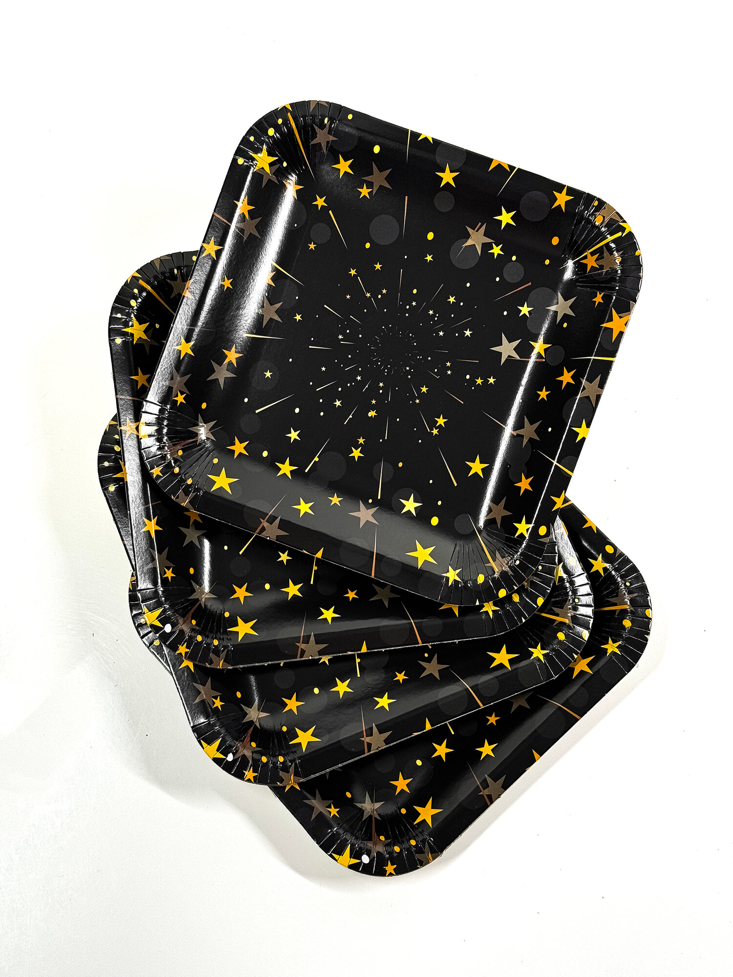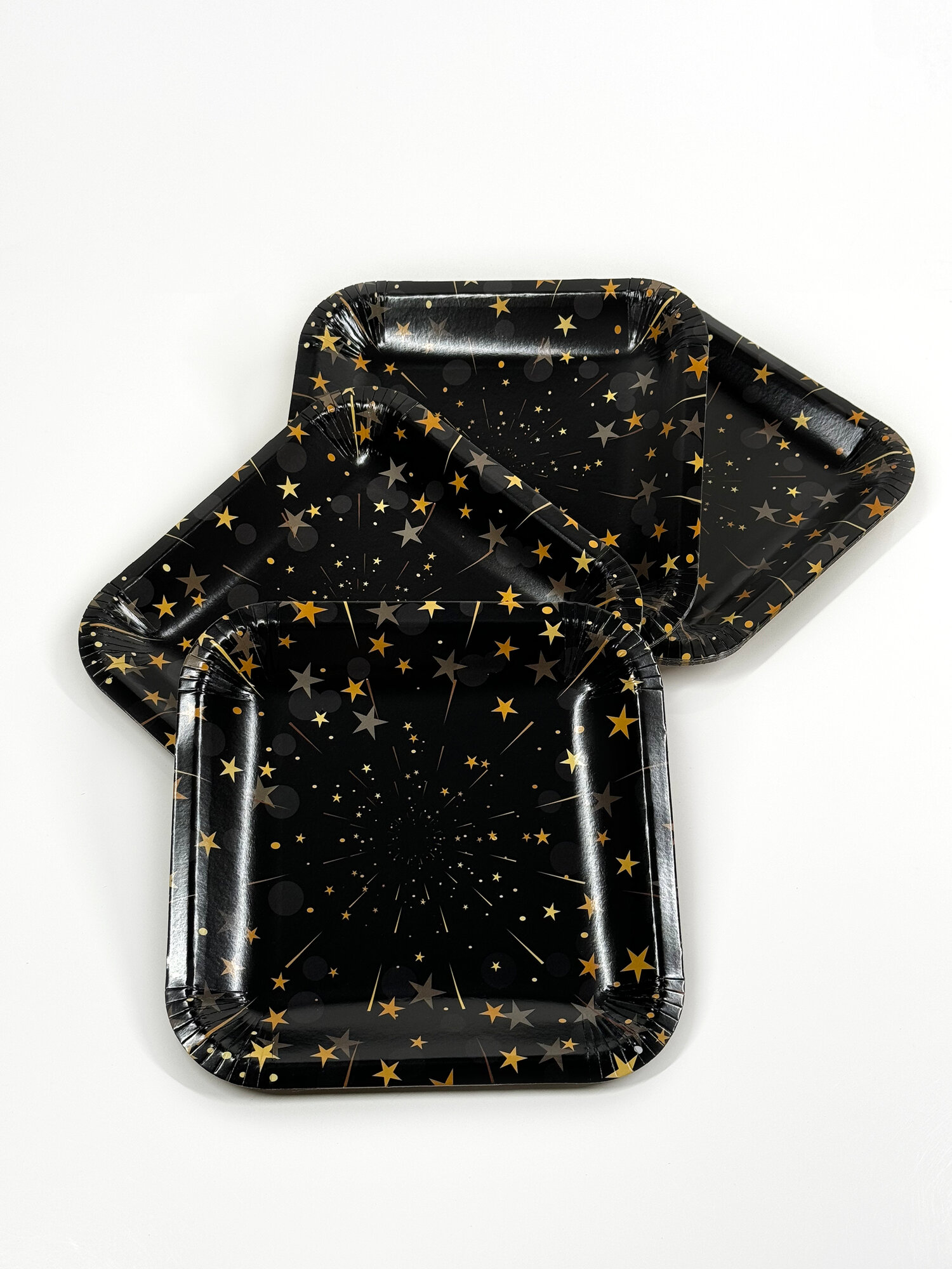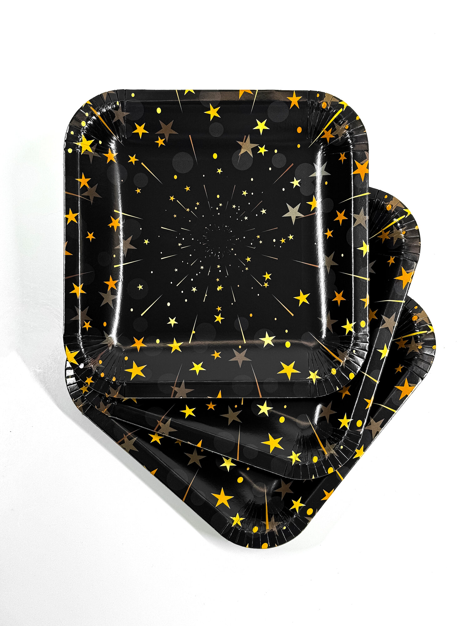 Купить Посуда КАРТОНЭКО "Золотые звёзды", одноразовая, 20 комплектов, чёрная/золотистая