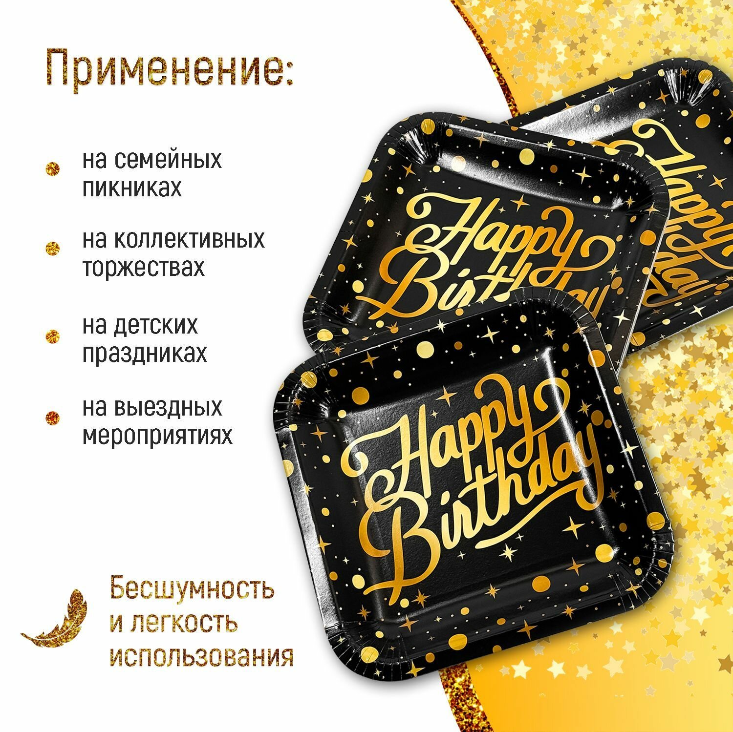 Посуда "Золотой праздник", для праздника, одноразовая, 20 стаканов, 20 тарелок, черная с золотом