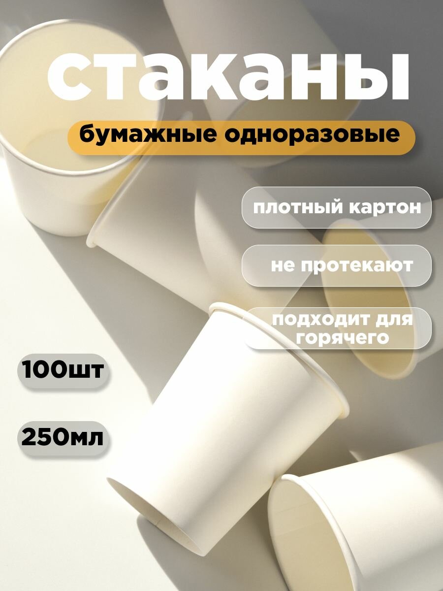 Стаканы одноразовые бумажные 250мл 100шт , стаканчики для кофе интересное: