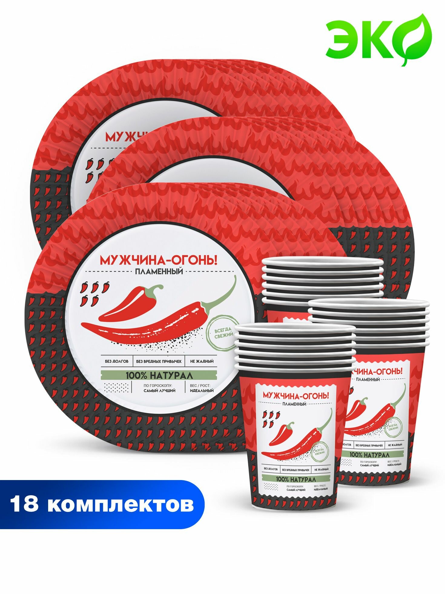Набор одноразовой бумажной посуды для праздника ND Play / Ешь шашлык (тарелка 23 см, стакан, по 18 шт.)