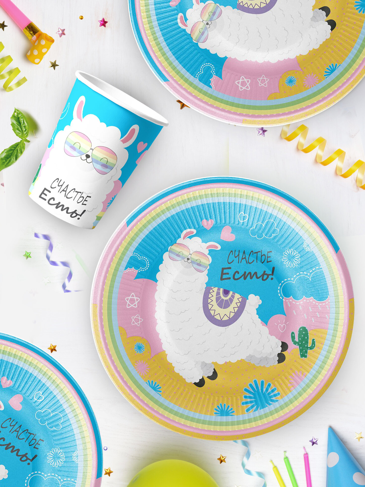 Набор бумажной одноразовой посуды для праздника Лама (стакан, тарелка мал. по 12 шт.) ND Play интересное: