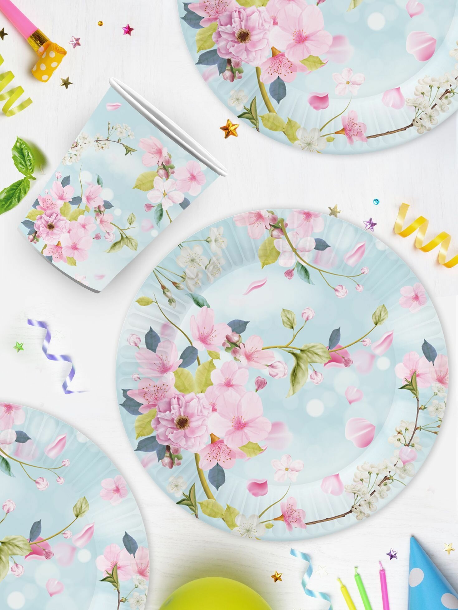 Набор бумажной одноразовой посуды для праздника ND Play / Яблоневый цвет (тарелка 23 см, стакан, по 12 шт.) интересное: