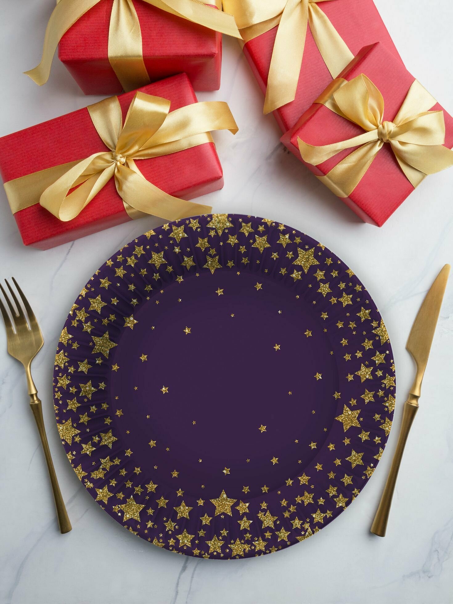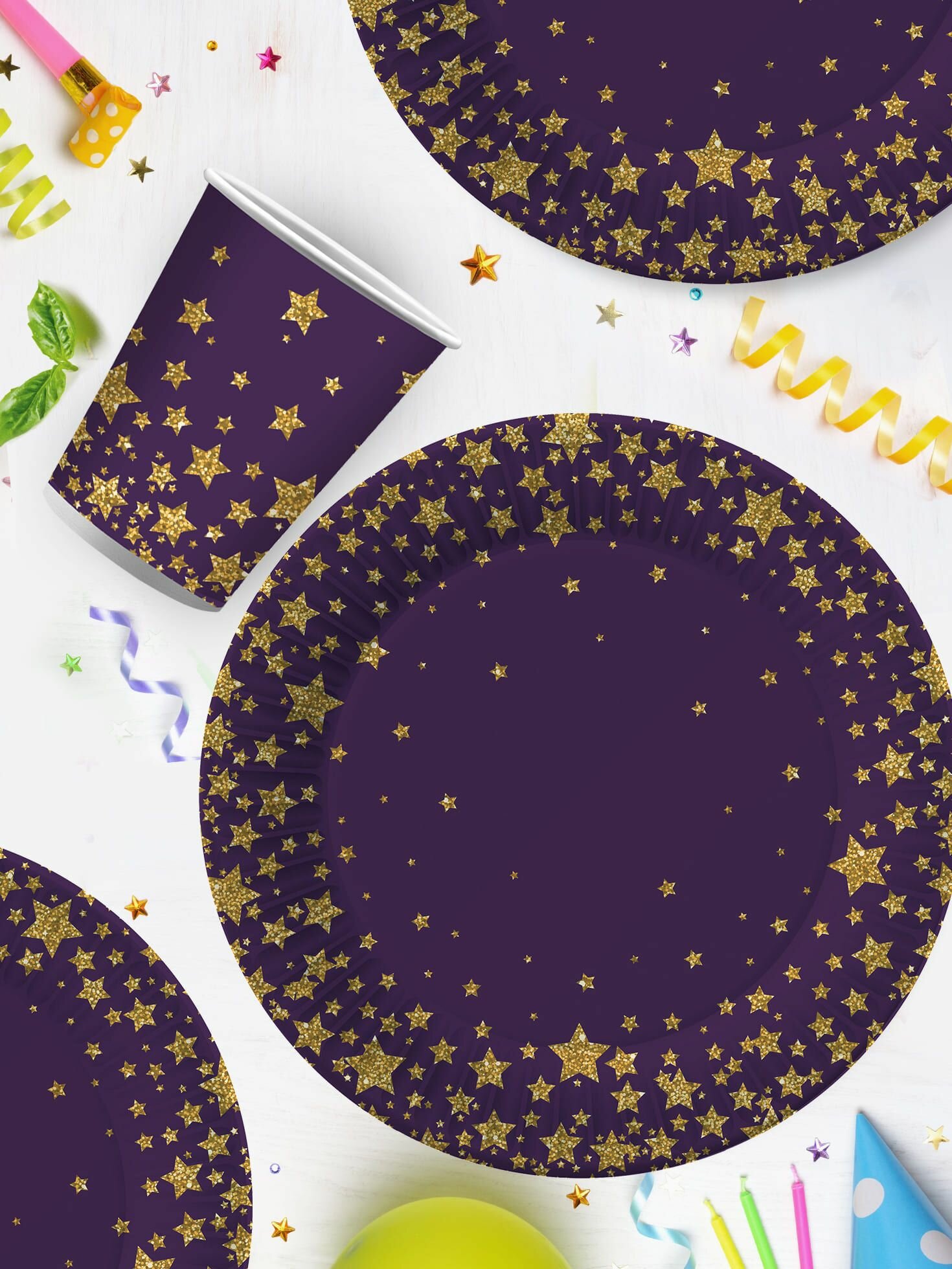 Купить Набор для праздника Звезды на черном-2 (тарелка 23 см, стакан по 12 шт.)