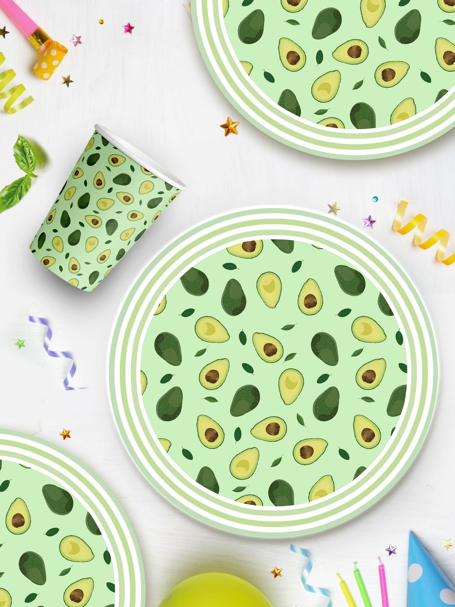 Набор одноразовой бумажной посуды для праздника ND Play / Авокадо №1 (тарелка 23 см, стакан, по 12 шт.)
