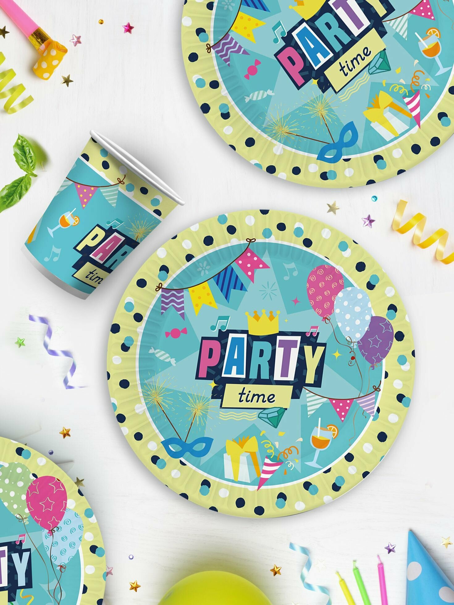 Купить Набор одноразовой бумажной посуды для праздника ND Play / Вечеринка (тарелка 23 см, стакан по 12 шт.)